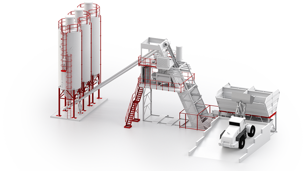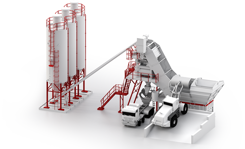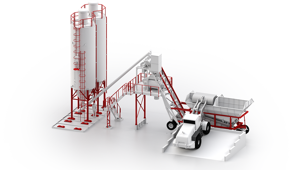 Ten mobilny węzeł betoniarski posiada przenośną konstrukcję ramy nośnej dzięki czemu jest łatwy w montażu oraz transporcie. Jego zaletą jest wysoka precyzja dozowania składników dzięki czemu produkty końcowe posiadają stale niezmienny skład.